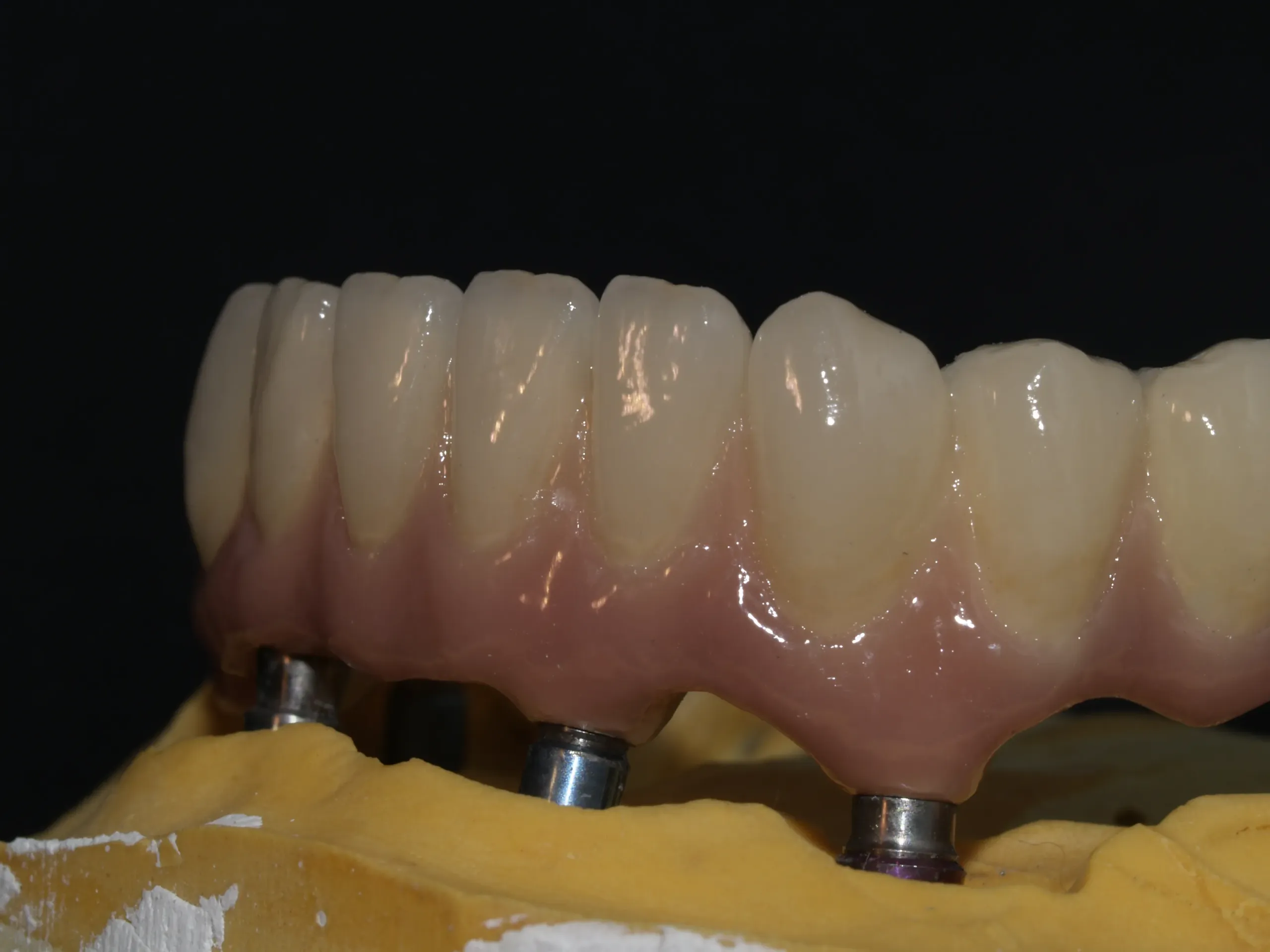 También realizamos puentes sobre implantes —junto a coronas, sobredentaduras y barras— sobre todo tipo de implantes, manteniendo el mismo enfoque de ajuste, función y estética.